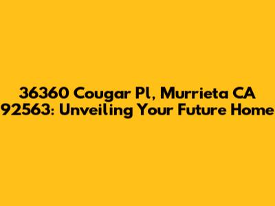 Hey there, future homeowner! Are you ready to dive into the world of real estate and explore a property that could be your perfect match? Let's take a closer look at 36360 Cougar Pl, Murrieta, CA 92563, a location that holds the promise of comfort, convenience, and a vibrant community. This article will be your ultimate guide, providing you with all the essential details you need to know about this address, from its location and surrounding area to potential property values and lifestyle perks. So, buckle up, grab your favorite drink, and let's embark on this exciting journey together!