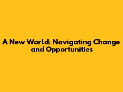 A New World: Navigating Change And Opportunities
