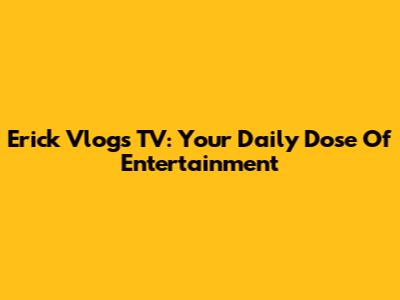 Erick Vlogs TV: Your Daily Dose Of Entertainment