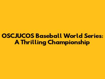 OSCJUCOS Baseball World Series: A Thrilling Championship