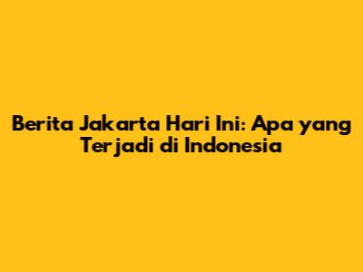 Berita Jakarta Hari Ini: Apa Yang Terjadi Di Indonesia