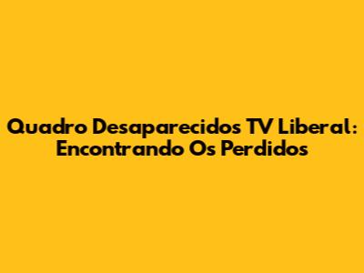 Quadro Desaparecidos TV Liberal: Encontrando Os Perdidos