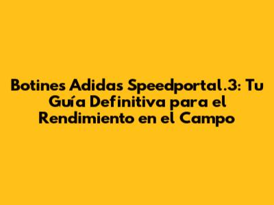 ¡Hola, futboleros! Si estás buscando llevar tu juego al siguiente nivel, has llegado al lugar correcto. Hoy, nos sumergiremos en el fascinante mundo de los botines Adidas Speedportal.3, una joya de la ingeniería deportiva diseñada para la velocidad y el control en el campo. Prepárense para una análisis exhaustivo, donde desglosaremos cada detalle de estos botines, desde sus innovadoras tecnologías hasta su ajuste y rendimiento general. ¿Listos para descubrir si los Speedportal.3 son los botines ideales para ustedes? ¡Vamos a ello!