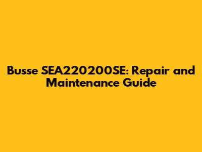Busse SEA220200SE: Repair And Maintenance Guide