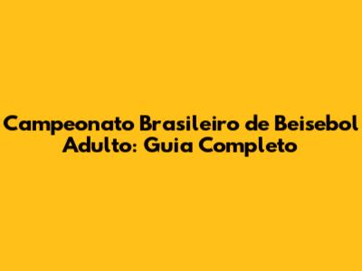 Campeonato Brasileiro De Beisebol Adulto: Guia Completo