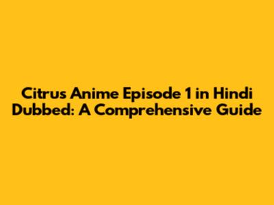 Hey guys! Are you looking for Citrus Anime Episode 1 in Hindi Dubbed? You're in the right place! This guide will provide you with everything you need to know about this popular anime, where to find the Hindi dubbed version, and why it’s such a hit. Let's dive in!