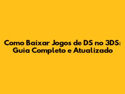 Como Baixar Jogos De DS No 3DS: Guia Completo E Atualizado