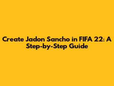 Create Jadon Sancho In FIFA 22: A Step-by-Step Guide