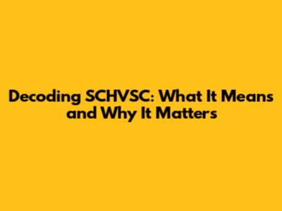 Decoding SCHVSC: What It Means And Why It Matters