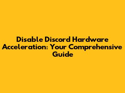 Hey guys! Ever felt like Discord is eating up your computer resources, causing lag, or generally just not running as smoothly as you'd like? You're not alone! A common culprit behind these issues is hardware acceleration. In this article, we'll dive deep into what hardware acceleration is, why you might want to disable it in Discord, and, most importantly, how to do it. We'll cover everything from the basics to troubleshooting, so you can get back to chatting, gaming, and connecting with your community without those annoying performance hiccups. Let's get started!
