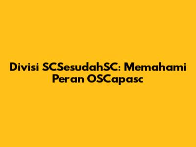 Mengapa OSCapasc Begitu Krusial untuk Divisi SCSesudahSC?