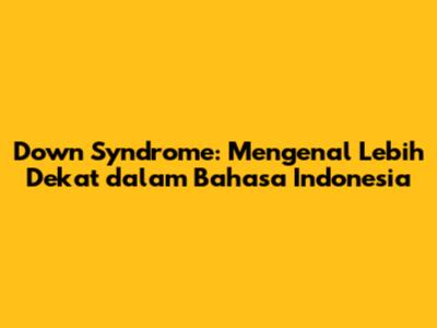 Sindrom Down adalah kondisi genetik yang memengaruhi perkembangan fisik dan mental individu. Memahami Sindrom Down dalam konteks bahasa Indonesia sangat penting untuk meningkatkan kesadaran, memberikan dukungan yang tepat, dan mengurangi stigma di masyarakat. Dengan intervensi dini, dukungan keluarga, pendidikan inklusif, dan kesempatan kerja, individu dengan Sindrom Down dapat mencapai potensi penuh mereka dan berkontribusi pada masyarakat. Mari bersama-sama menciptakan lingkungan yang inklusif dan mendukung bagi individu dengan Sindrom Down.