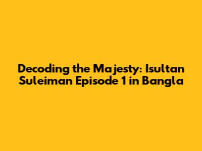Hey everyone! Ever found yourselves completely captivated by historical dramas? I know I have, and one that particularly stands out is the epic series, Isultan Suleiman. If you're a fan of the show, or even just curious, let's dive into the world of Episode 1, specifically the Bangla version. This episode acts as a grand introduction to the life and times of Suleiman the Magnificent, one of the most powerful and influential rulers in Ottoman history. We're going to break down the key elements that make this episode so compelling, from the stunning visuals and compelling characters to the historical context that gives the series its depth. Buckle up, because we're about to embark on a thrilling journey! We'll explore the initial power dynamics, the introduction of key figures, and the overall narrative setup that draws you in from the very first scene. This isn't just a recap; it's an analysis of what makes Isultan Suleiman such a captivating series, and how the Bangla translation brings it to life for a wider audience. So, whether you've seen the episode a hundred times or are just hearing about it for the first time, there's something here for everyone. Let's get started and unpack the brilliance of Episode 1!