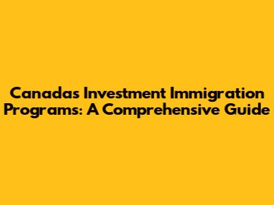 Canada's Investment Immigration Programs: A Comprehensive Guide