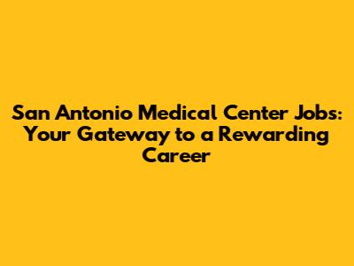 Hey guys! Are you on the hunt for San Antonio Medical Center jobs? You've landed in the right spot! Finding a job, especially in the healthcare field, can feel like navigating a maze. But don't worry, we're here to be your guide. We'll explore the incredible opportunities at the San Antonio Medical Center, break down what makes these jobs so awesome, and give you the inside scoop on how to land your dream role. Get ready to discover a career that not only offers stability and growth but also allows you to make a real difference in people's lives. Let's dive in and uncover the possibilities that await you!