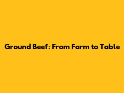 Ground Beef: From Farm To Table