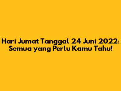 Hari Jumat Tanggal 24 Juni 2022: Info Lengkap