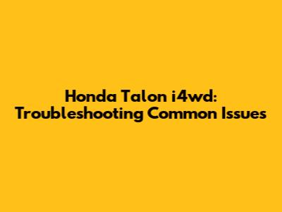 Honda Talon I4wd: Troubleshooting Common Issues
