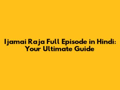 Q: Where can I watch Ijamai Raja full episodes in Hindi? A: You can typically find the episodes on streaming platforms like Zee5, or other official streaming services and TV channels.