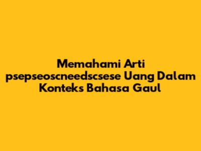 Memahami Arti 'psepseoscneedscsese Uang' Dalam Konteks Bahasa Gaul