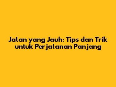 Jalan Yang Jauh: Tips Dan Trik Untuk Perjalanan Panjang