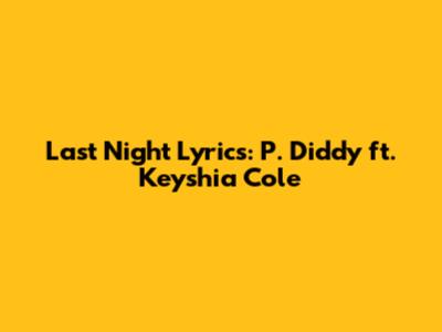 Hey guys, let's dive into the iconic track "Last Night" by P. Diddy featuring the incredible Keyshia Cole. This song, released in 2006, isn't just a banger; it's a whole mood, a story, and a major throwback for many of us. When you think about the early 2000s hip-hop and R&B scene, "Last Night" is definitely one of those songs that comes to mind. It’s got that perfect blend of P. Diddy’s signature swagger and Keyshia Cole's raw, emotional vocals that just hit you right in the feels. The production is smooth, the beat is infectious, and the storytelling is relatable, making it a timeless hit that still gets played today. Whether you’re reminiscing about your own "last night" or just vibing to the music, this song has a way of pulling you in. We’re going to break down the lyrics, explore the meaning behind them, and really get into why this track became such a classic. So, grab your headphones, turn up the volume, and let’s get into it!