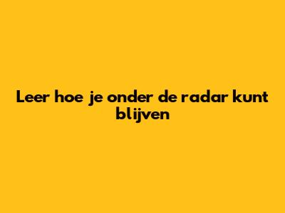 Leer Hoe Je Onder De Radar Kunt Blijven