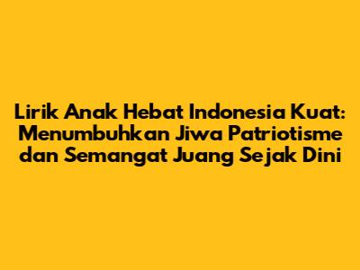 Lirik Anak Hebat Indonesia Kuat adalah lagu yang sangat penting untuk generasi muda Indonesia. Lagu ini bukan hanya sekadar hiburan, tetapi juga sarana untuk menanamkan nilai-nilai positif, semangat juang, dan rasa cinta terhadap tanah air sejak dini. Melalui lirik yang mudah dipahami dan melodi yang ceria, lagu ini mampu menyentuh hati dan pikiran anak-anak, sehingga mereka lebih mudah memahami makna dari setiap liriknya. Lagu ini mengajarkan anak-anak untuk mengenal lebih dekat tentang Indonesia, memiliki karakter yang kuat, dan mempererat tali persaudaraan.