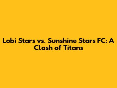 Hey guys! Get ready for a deep dive into one of the most exciting matchups in Nigerian football: Lobi Stars vs. Sunshine Stars FC! This isn't just any game; it's a battle steeped in history, rivalry, and a whole lot of passion. We're going to break down everything you need to know, from the teams' backgrounds and current forms to what you can expect when these two titans clash on the pitch. So, grab your snacks, settle in, and let's explore what makes this fixture so special. This rivalry often brings high-stakes drama, with both teams desperate to prove their dominance. Let's explore the rich history of these teams.