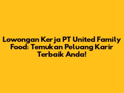 Lowongan Kerja PT United Family Food: Peluang Karir Menarik!