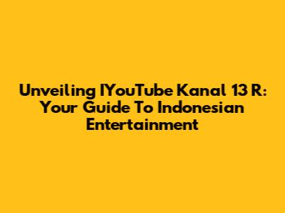 Unveiling IYouTube Kanal 13 R: Your Guide To Indonesian Entertainment