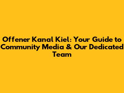 Understanding Offener Kanal Kiel: More Than Just a Channel