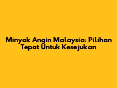 Minyak Angin Malaysia: Pilihan Tepat Untuk Kesejukan
