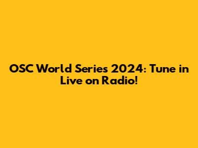 Why Listen to the OSC World Series 2024 on the Radio?