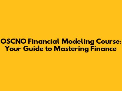 OSCNO Financial Modeling Course: Your Guide To Mastering Finance