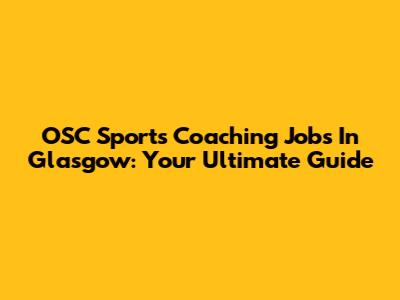 OSC Sports Coaching Jobs In Glasgow: Your Ultimate Guide