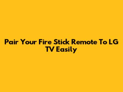 Pair Your Fire Stick Remote To LG TV Easily