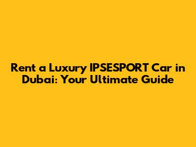 Rent A Luxury IPSESPORT Car In Dubai: Your Ultimate Guide
