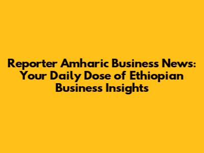Why Reporter Amharic Business News Matters for Your Success
