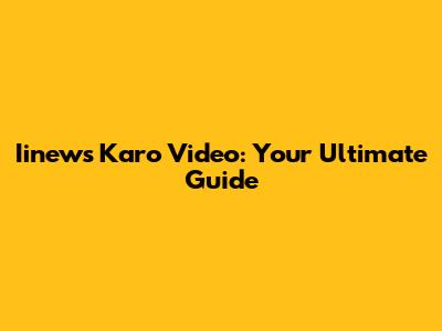 Iinews Karo Video: Your Ultimate Guide