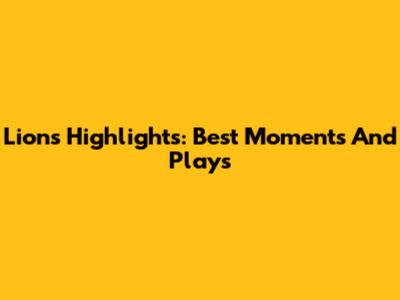 Lions Highlights: Best Moments And Plays