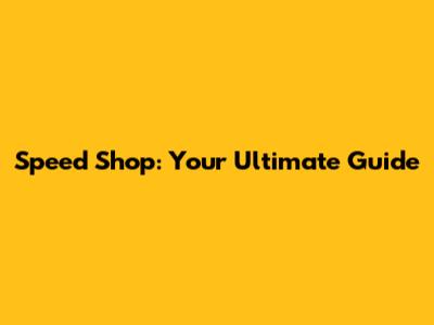 Speed Shop: Your Ultimate Guide