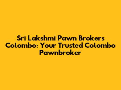 Sri Lakshmi Pawn Brokers Colombo: What They Offer