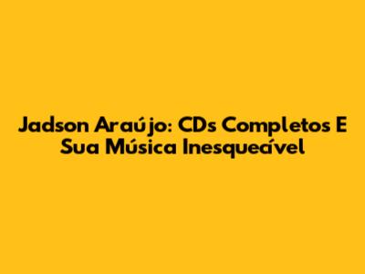 Jadson Araújo: CDs Completos E Sua Música Inesquecível