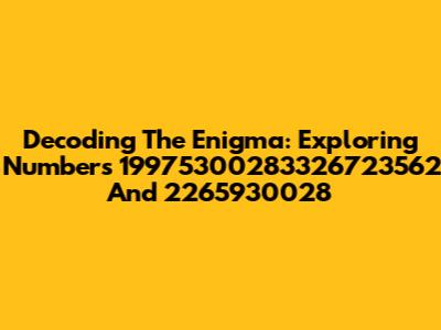 Decoding The Enigma: Exploring Numbers 19975300283326723562 And 2265930028