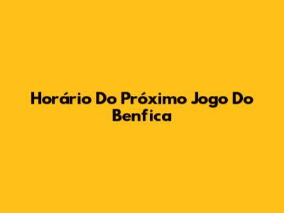Horário Do Próximo Jogo Do Benfica