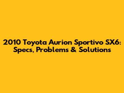 2010 Toyota Aurion Sportivo SX6: Specs, Problems & Solutions