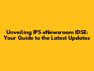 Unveiling IPS ENewsroom IDSE: Your Guide To The Latest Updates