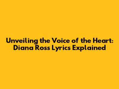 Hey music lovers! Ever gotten lost in the magic of a song, feeling every beat and word sink deep into your soul? Well, if you're a fan of the legendary Diana Ross, you've definitely experienced that with "Voice of the Heart." This track is more than just a song; it's a journey, a heartfelt exploration of emotions that many of us can relate to. Today, we're diving deep into the lyrics of "Voice of the Heart," breaking down its meaning and the powerful message Diana Ross so beautifully conveys. We'll explore the themes of vulnerability, self-discovery, and the courage it takes to open your heart. Grab your headphones, get comfy, and let's get started!