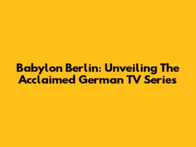Babylon Berlin: Unveiling The Acclaimed German TV Series